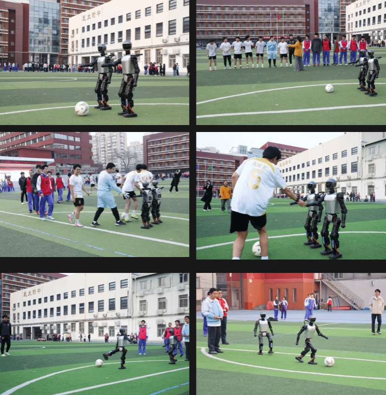 最令人期待的环节到来——两台智能足球机器人走进场地中央,与徐云龙先生一起分别为两个年级足球班级联赛揭幕战开球!这一“人机互动”的独特开球仪式,成为开幕式最独特的瞬间。