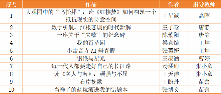 同时,在师生组别中均取得亮眼成绩:10名同学获评市级“阅读之星”,6名教师荣获“优秀指导教师”称号,1名教师被授予“先进工作者”称号。我校学子积极进取、奋勇争先,以文字抒发阅读所思所感,展现出民附学子丰富的阅读积累与深厚的文学素养。