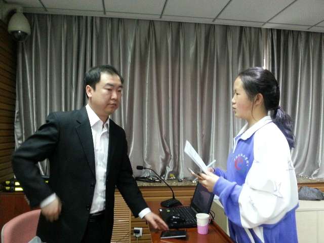 高一、高二年级近200名学生聆听了讲座。芦超法官、马迪检察官的讲座,为同学们上了一堂生动的法制课。在讲座进行中,同学们饶有兴致地结合自己身边的问题与两位老师展开了互动,探讨一些法律问题,两位老师都一一作了解答。民附新闻社小记者对两位老师分别进行了专访。