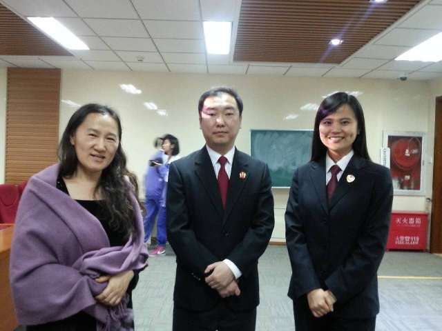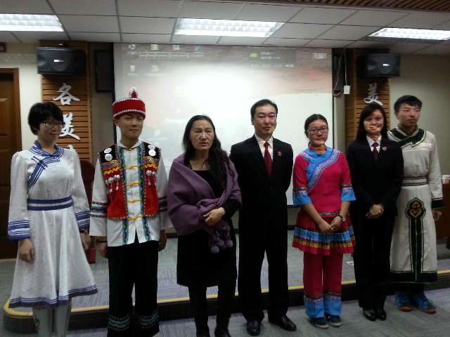 讲座开始前,民大附中党委书记佟丽娟与芦超法官、马迪检察官亲切交谈并合影留念。