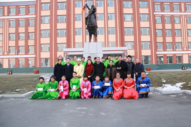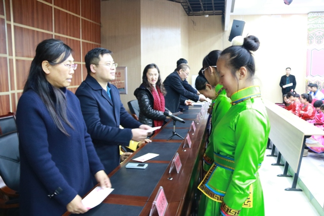 暴文明校长代表学校发言,他深情地回顾了自2009年民大附中挂牌共建以来,通榆蒙古族学校建设发展及学生培养所发生的巨大变化,受助学生代表表示,一定不辜负民大附中、北京共美民族教育发展基金会和社会爱心人士的关怀和期望,把社会的关爱转化成战胜困难的动力,发奋学习,以优异的成绩回报家乡和社会。