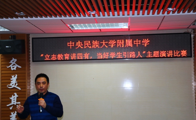 为深入推进“两学一做”学习教育开展,团结凝聚全体教职工用习近平总书记提出的“四有”好老师和“四个引路人”标准严格要求自己,不忘初心,共同奋斗。学校党委在民大附中教育集团开展了“立志教育讲四有,当好学生引路人”主题演讲比赛活动。