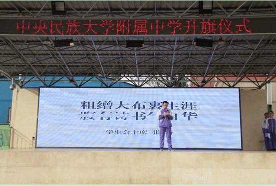 由学生处主持的海淀校区升旗仪式上校团委做的《千里之行,始于足下》主题演讲激励民附学子,身系民族情悸。五千年的文明孕育着民族基因、结晶文化和深层次的人文情怀;独特的“共美教育”是涵养我们心性最肥沃的土壤;壮美大地哺育兼容并蓄的“各美其美”文化血脉,民附学子在新学期不畏激流,扬帆起航。
