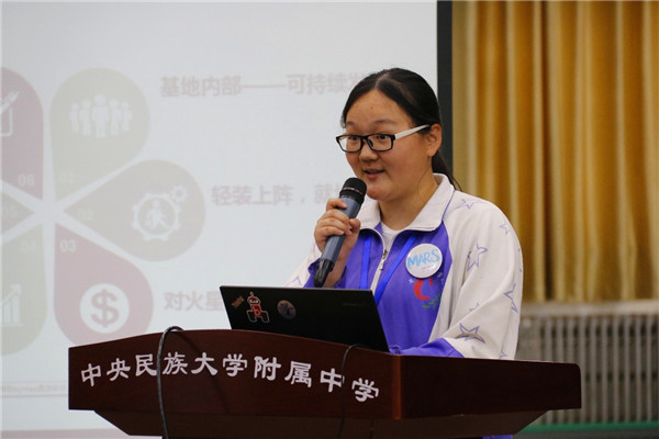 4月30日上午,由民大附中承办的 2017“飞向火星”全国中学生太空城市设计挑战赛,在我校海淀校区风雨操场隆重举行。来自全国十所中学的10支代表队,60位选手,从全国几十个初选提案中脱颖而出,来到现场。
