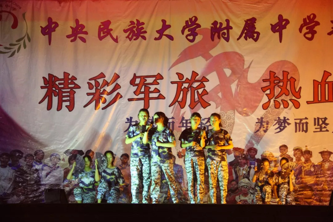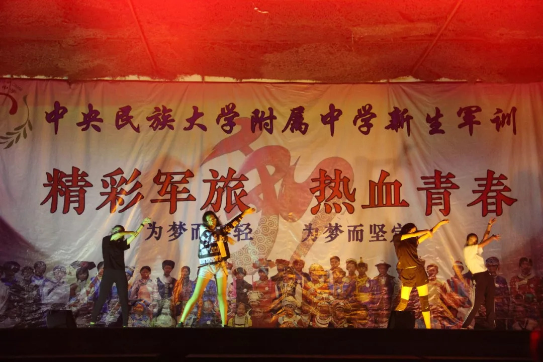 8月30日,新生军训的第八天,为磨砺意志的同时丰富学生的精神生活,晚上7点到8点,在学校领导的陪伴、军训教官以及民大附中2018级新生的共同参与下,军训文艺汇演成功举行。