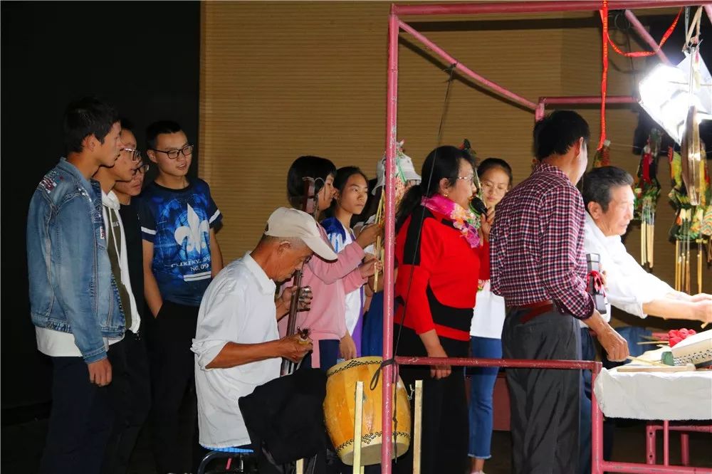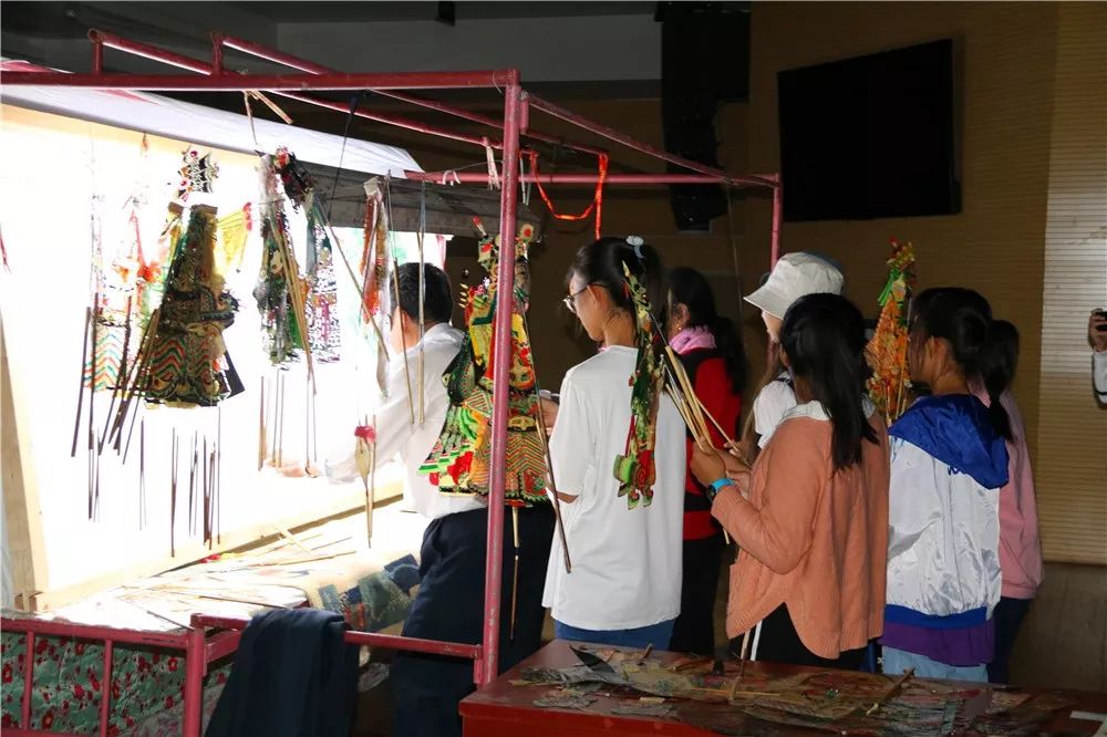 随后,表演者还给同学们一一展示了皮影戏的道具和乐器,并带来第二段表演——孙悟空三打白骨精。演出过程中,老艺人们邀请同学们参与其中,同学们热情高涨,踊跃参与,在幕后排队等待,自己动手耍起皮影。在亲身参与后,同学们纷纷表示看似简单的耍皮影,但是实际操作起来着实不易,老艺人们从小学习的技艺日复一日沉淀下来,才成就了今天的艺术表演。