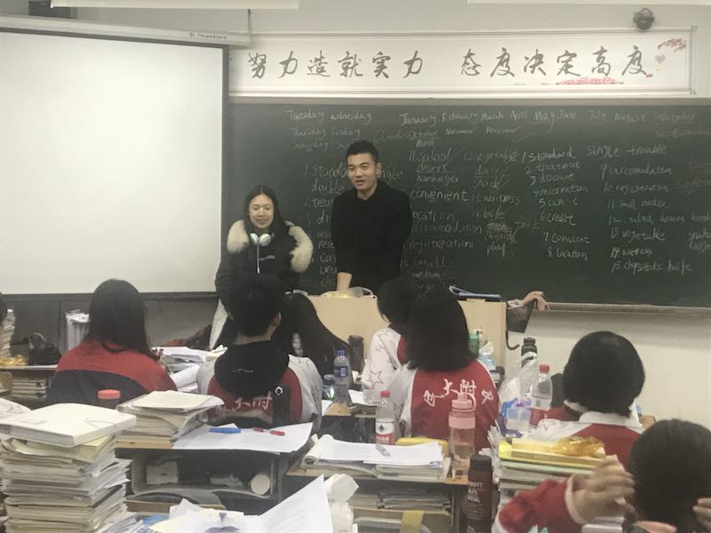 晚饭后,紫衫学长学姐们来到高三小院,分成小组进入各个班进行进一步讲解(聊天)。有的学长学姐精心准备了PPT,洋洋洒洒讲到了晚自习;有的一边讲,一边在黑板上做记录,清晰全面。