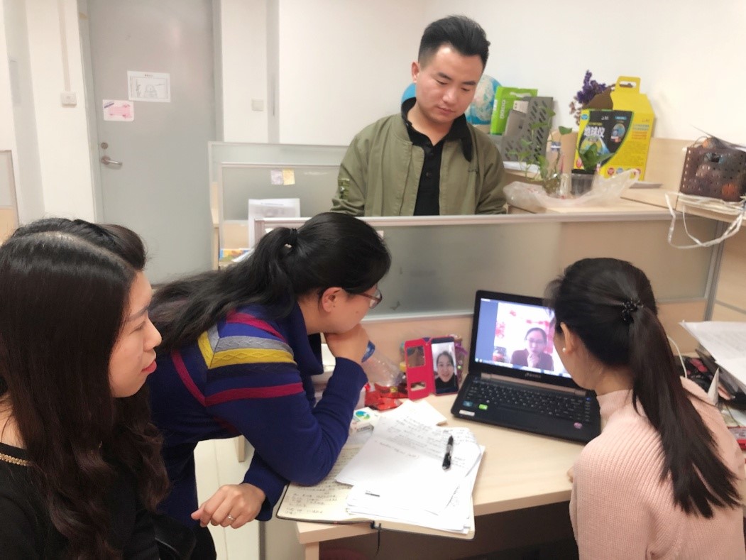 2019年1月22日晚,我校地理组与化学组老师通过远程视频,将海淀校区、朝阳校区和在家的老师同步连接互动,就STEAM课程的开发与探索展开研讨。化学组教师有陈婷婷、张晨颖、乔红阳,地理组教师梁红梅、刘笑妍、孟丰收、彭丽君、朱秀荣等共同参与讨论。远程视频教研打破了时空和学科的界限,为非工作时间跨地域跨学科教研提供了参考,让大家的交流更方便,沟通更便捷。
