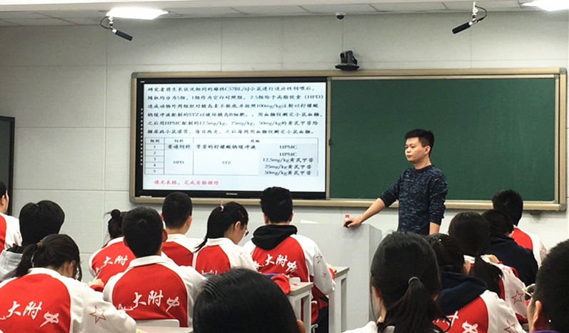 傅俊华老师是教龄4年的年轻教师,创新意识强,教学设计脉络清晰、严谨。她以《阿尔茨海默症机理探究》为题,从疾病的表现入手,分析了该病的研究思路方法、研究价值及意义。傅老师选取的材料与学生的健康生活息息相关,内容新颖,材料挖掘非常充分。学生在学习过程中体验了多角度思维和实验设计的普遍方法、思路,在创新和设计能力上有了更多提升。