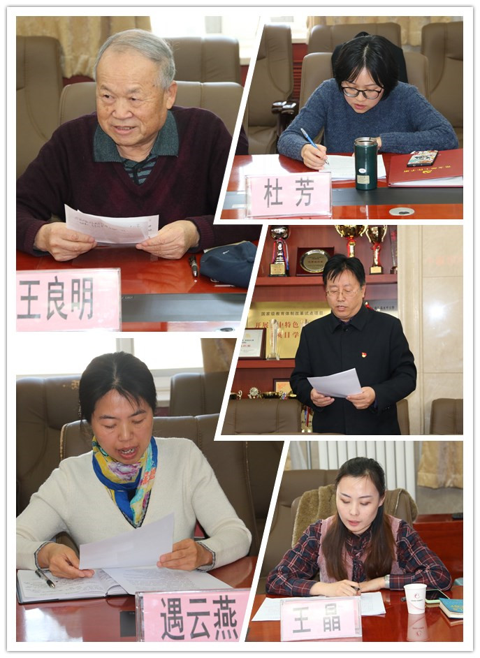 学校党委委员兼行政综合校友办、基金会、幼儿园联合党支部书记韩晓原,教学第一党支部书记杜芳、教学第二党支部委员王晶、教学第三党支部书记遇云燕及退休党支部书记王良明分别围绕学习贯彻党的十九大精神、习近平总书记系列重要讲话精神、加强党支部队伍和组织建设、落实学校党建工作任务等方面进行了汇报。党委委员分别对各党支部书记的述职情况进行了评议,并提出了建议和希望。