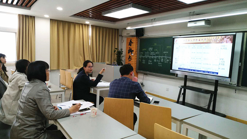 这是李静老师第一次亲密接触民大附中。通过听评课的交流,李老师对附中的建校史和革命史产生了深深的共鸣,一再表示自己听得“热情澎湃”,对民附的历史“肃然起敬”。在那一刻,近代历史变迁中,包括民附杰出校友在内的一代又一代中国人为了救亡图存前赴后继的感人事迹再次打动了所有人。