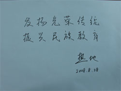 前全国人大常委会副委员长热地给附中95周年校庆的题词