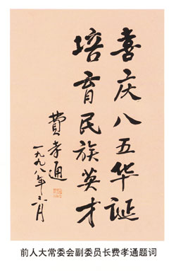 前全国人大常委会副委员长费孝通为我校题词