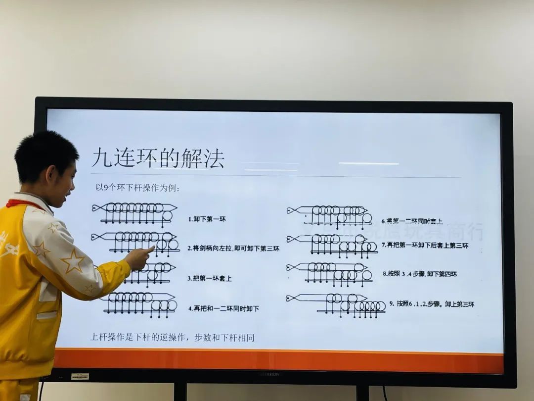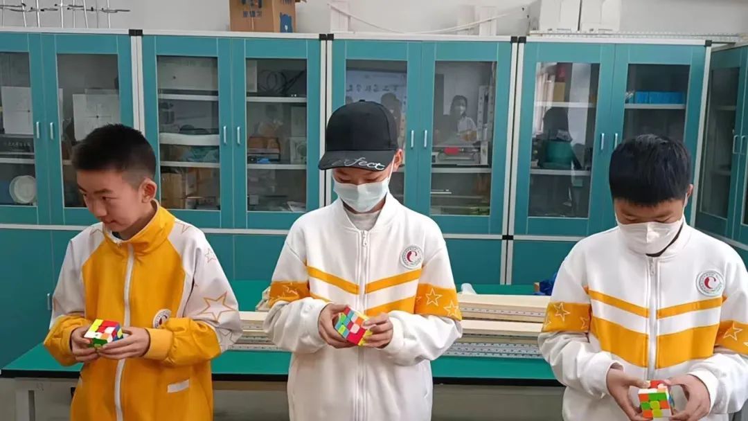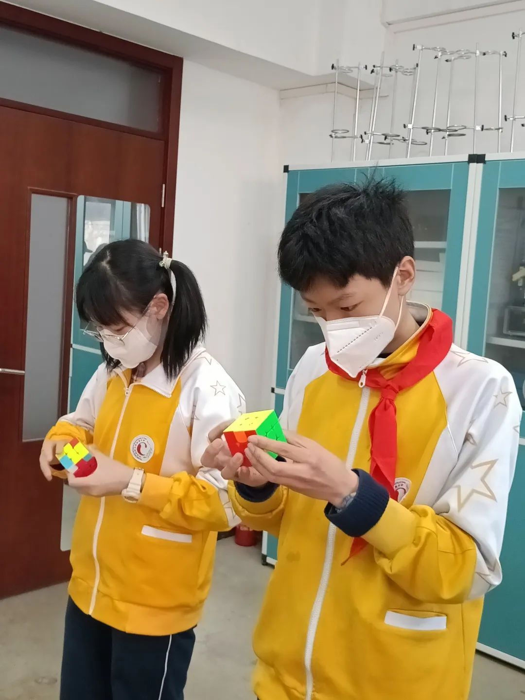 魔方比赛分为“进阶比赛”和“魔方秀”两个部分。19位同学报名参加了“进阶比赛”,经过3轮进阶比赛,最终选出刘昊东、高北辰、林夏冰3位最优选手。在“魔方秀”部分,刘昊东、张琳皓2位同学分别展示了六阶魔方、异型魔方、金字塔魔方、十二面体魔方的花式玩法。