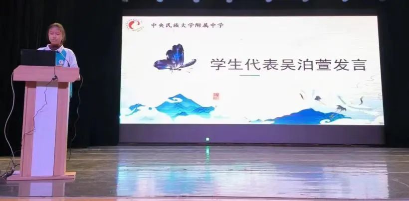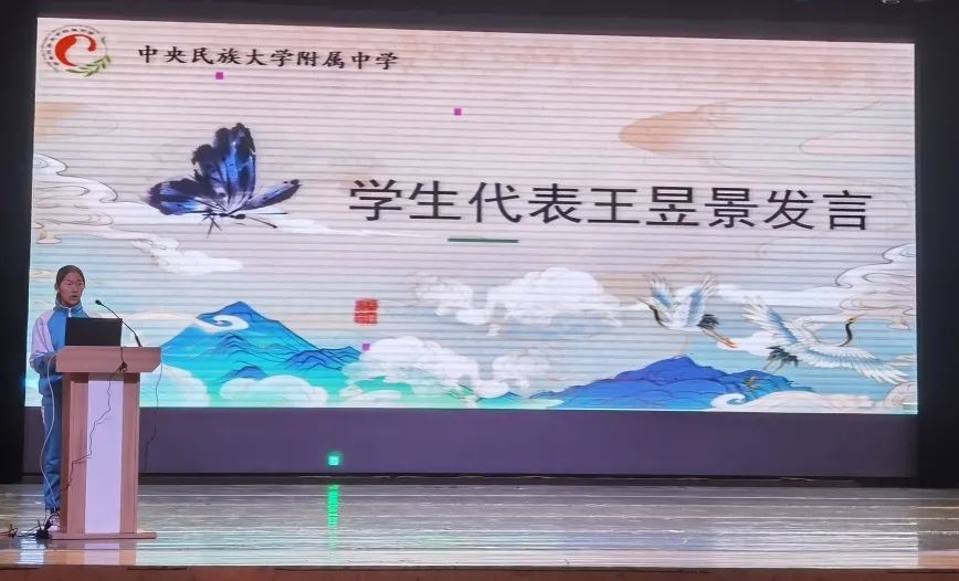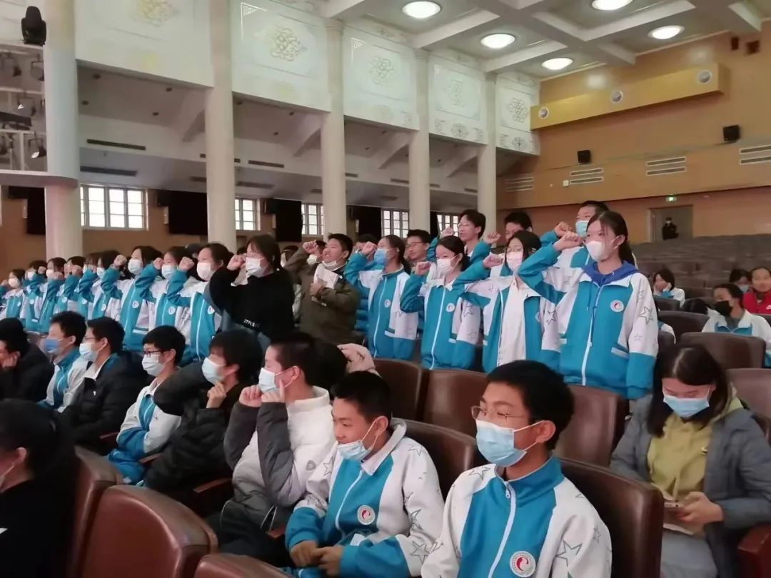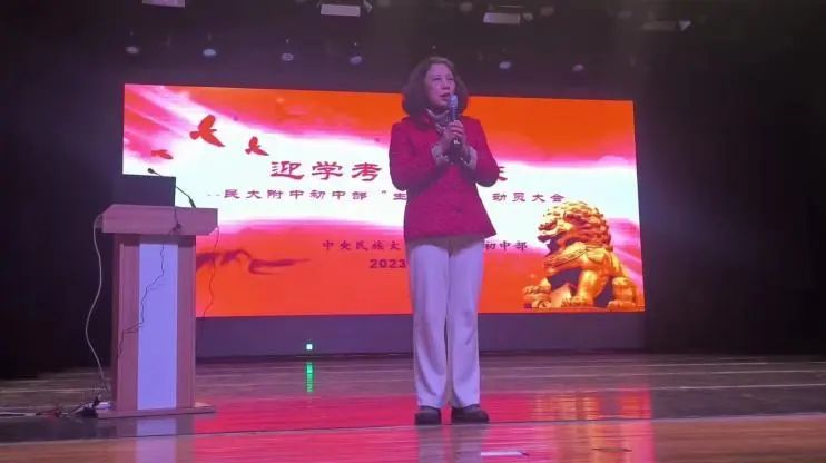 民大附中初中部教务校长平静出席本次动员大会。她深切嘱托同学们:“百天的时间说长不长,说短不短,民大附中的全体领导和老师一定会与大家同心协力,并肩作战,一起迎接最后的胜利!”