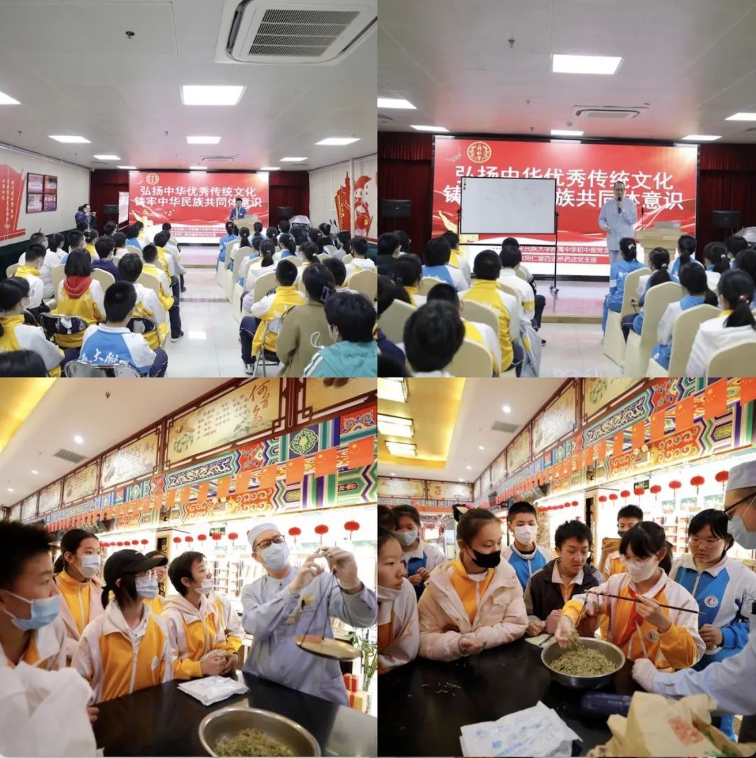 此次活动由初中部党支部联合我校中医社团共同筹划组织,旨在引导学生近距离参观同仁堂这一历史最悠久的中医药企业,感受祖国中医药文化的源远流长,弘扬中华优秀传统文化,铸牢中华民族共同体意识。