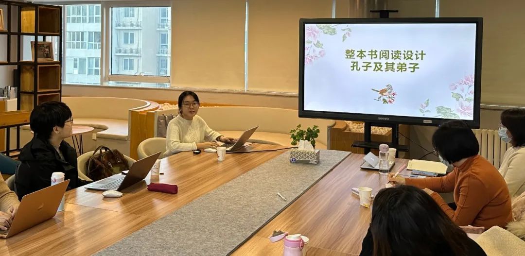 民大附中语文组的魏妙老师结合《论语》整本书阅读的方法及“孔子及其弟子”专题作了说课分享,针对学生在《论语》学习中呈现出的碎片化状态,建议以项目式学习(PBL)及专题学习的方式来引导学生。魏老师的说课以海昏侯刘贺墓中出土的孔子像漆衣镜作为导入,通过文物与文本的对读,旨在引导学生重新回到经典;再通过《论语》《左传》《史记》选文间的互文阅读,带领学生在文本情境内分析、思考探究人物形象,对人物命运进行解读,进而加深对儒家核心价值观“礼”“仁”的理解。