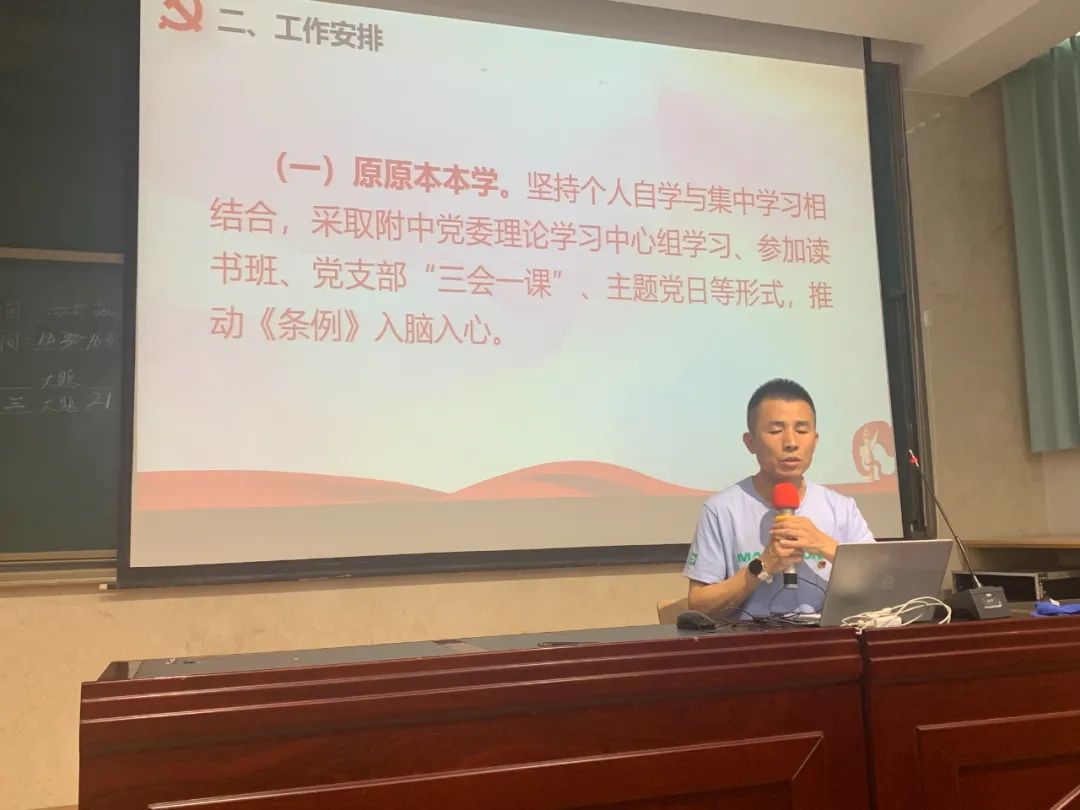 会后,附中各教职工党支部迅速响应,党支部书记、纪律委员传达了学校党委对党纪学习教育工作的相关要求。支部以“三会一课”、党小组的形式开展集中学习。全体党员积极学习党纪,坚决将纪律意识刻在心中,落实在行动中。