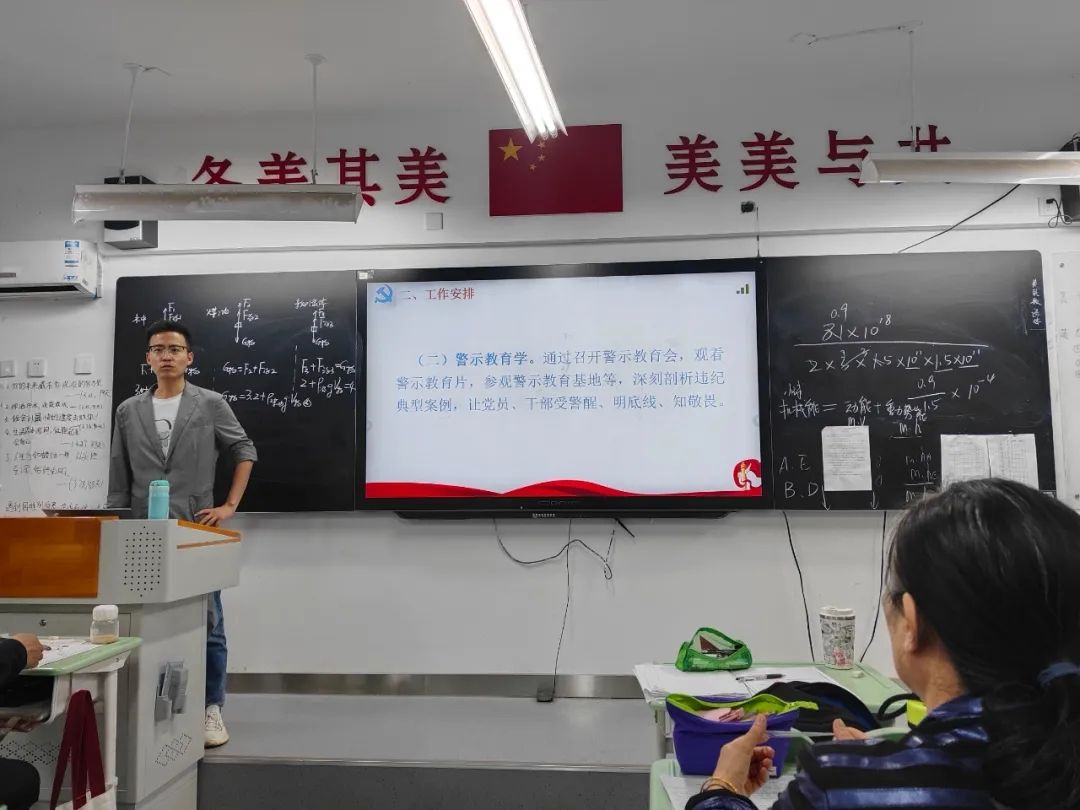 附中党委委员、2022级教师党支部书记周利宣讲党委关于党纪学习教育的会议精神
