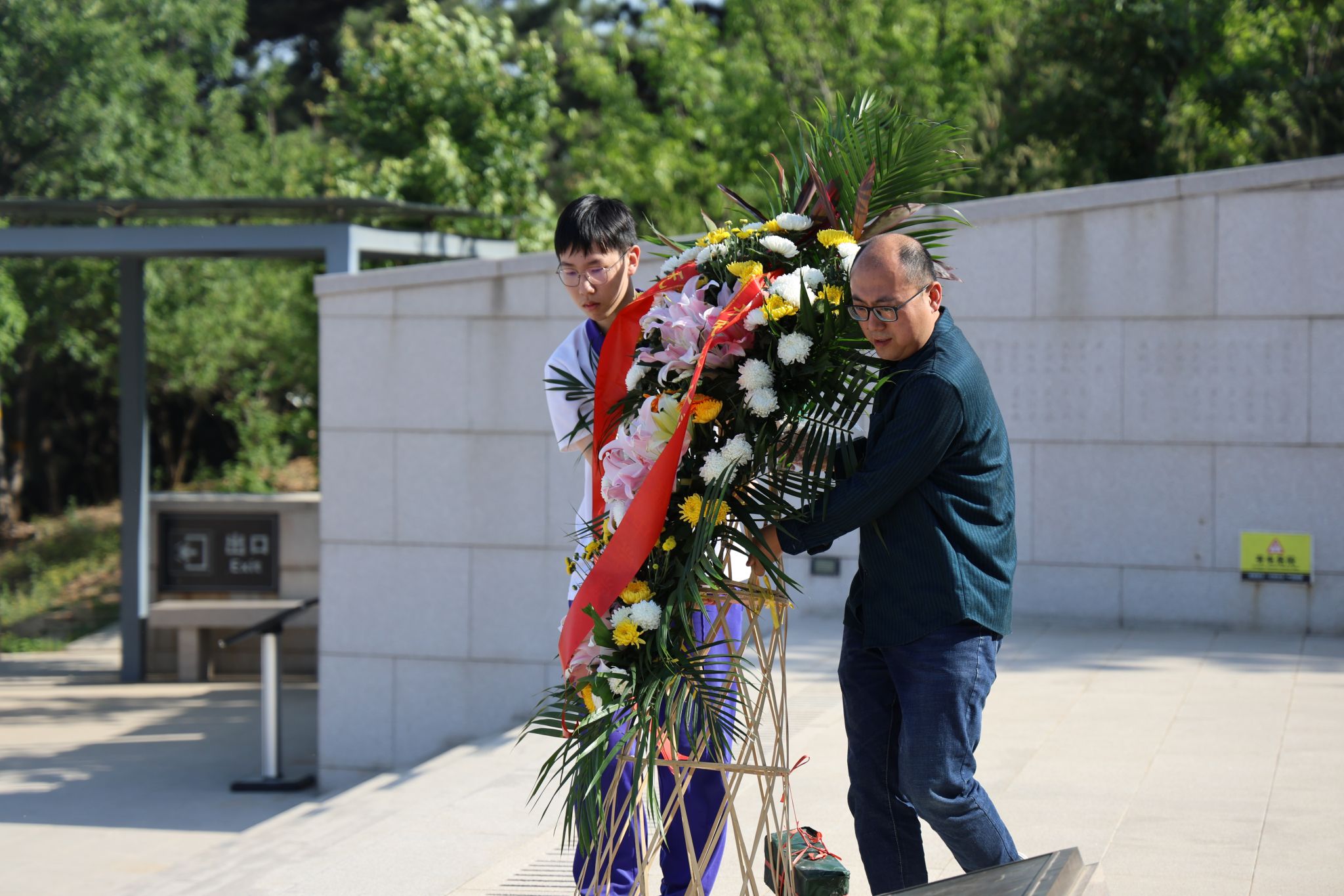 2021级教师党支部书记赵维和老师与学生代表为烈士敬献花篮