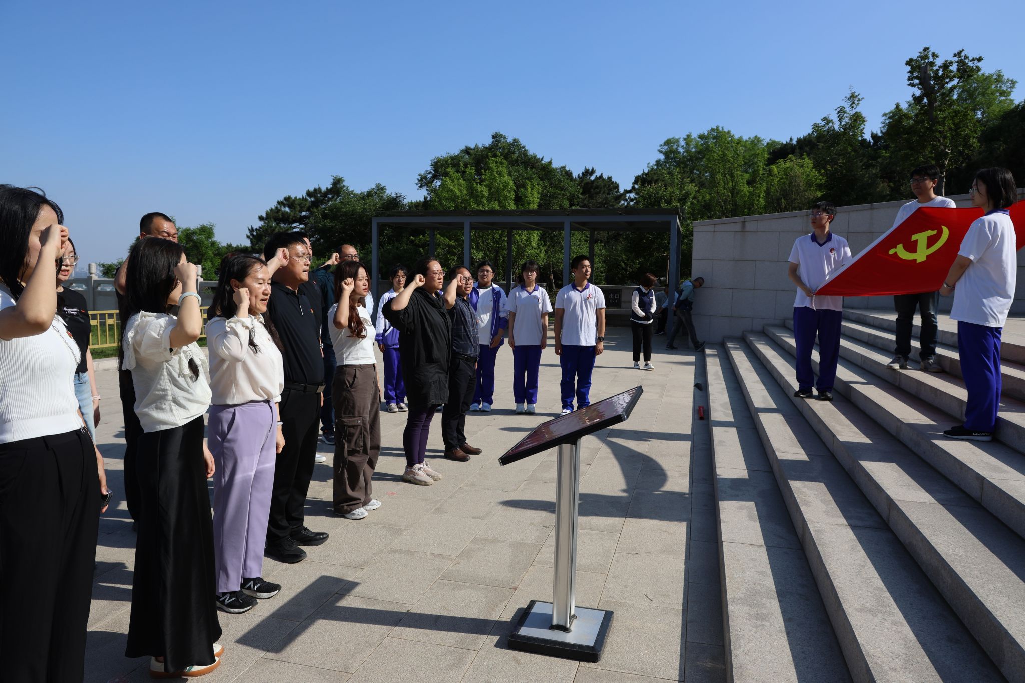 为提升附中分党校建设质量,促进党纪学习教育走深走实,5月14日下午,附中党委、分党校在西山国家森林公园无名英雄纪念广场开展“上好党规党纪第一课 扣好人生第一粒纽扣”主题党日活动暨附中分党校新入党教师和入党积极分子培训现场教学活动。新、老党员代表、党团组织负责人、青年教师和满18周岁提交入党申请书的高三学生以及共建校进修教师参加了活动。