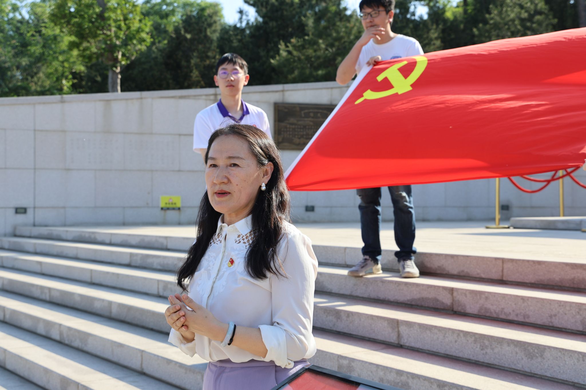 自从踏进民大附中,就被这所红色学校的文化浸润着。无论是五四表彰大会还是“青马工程”团课,我们都有幸听到佟书记充满信仰力量的讲话或党课。青山埋忠骨,翠柏慰英灵。今天,我在提交入党申请书不久,就跟随着学校党组织到西山国家森林公园的无名英雄纪念广场缅怀先烈。我们得以深入了解这段刻骨铭心的历史,深刻感受烈士们的英勇与伟大,引领我们赓续红色血脉,擘画青春蓝图。