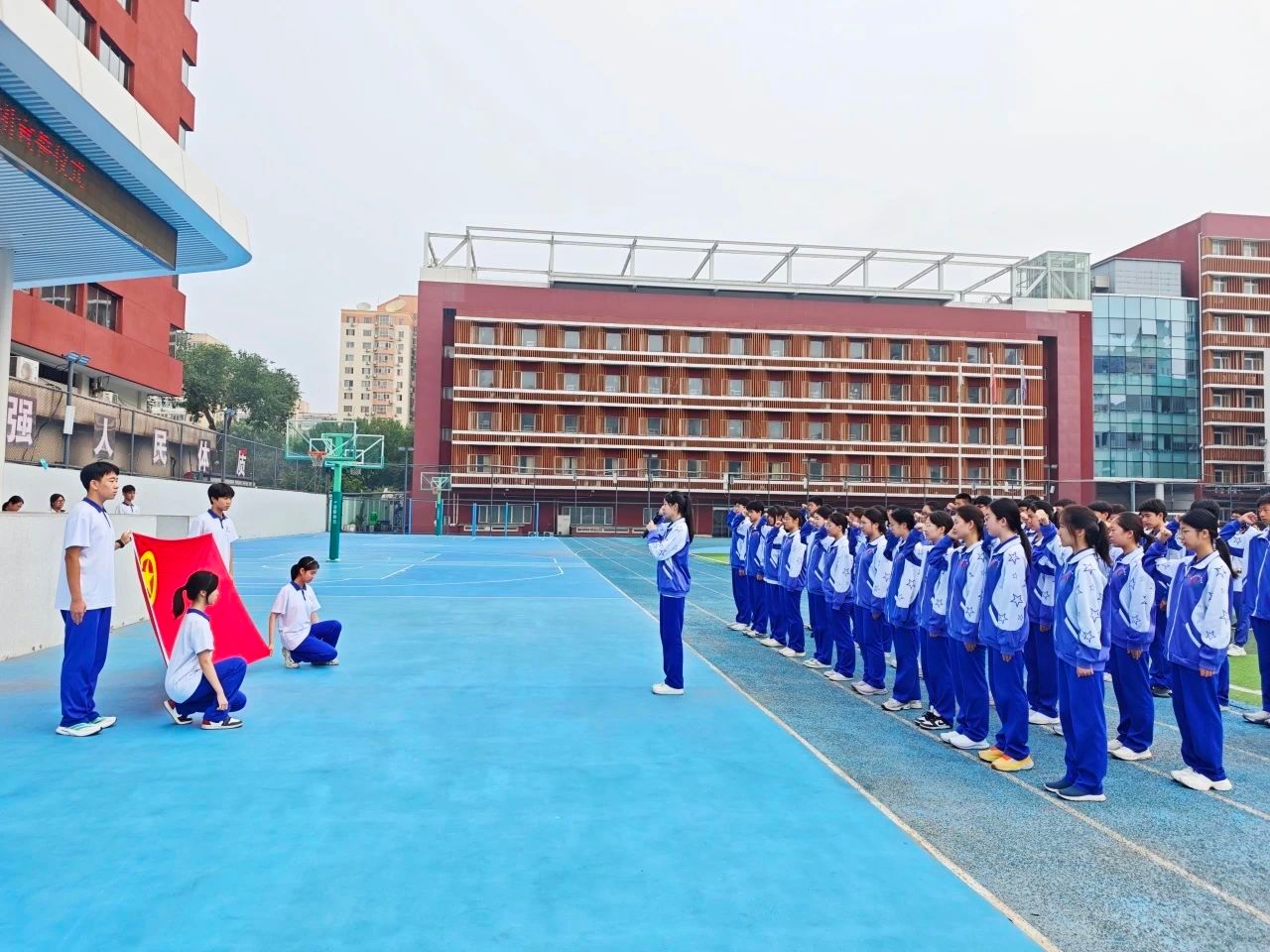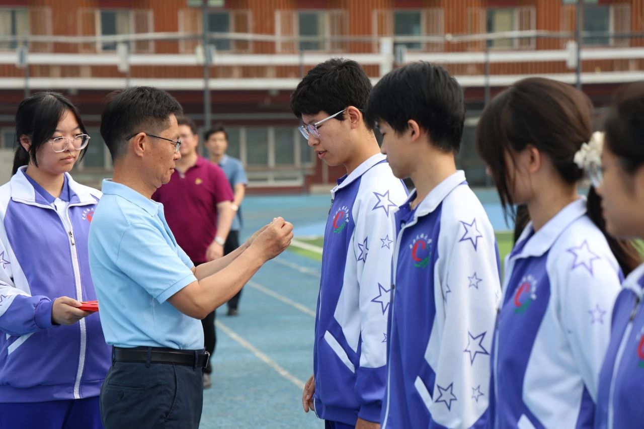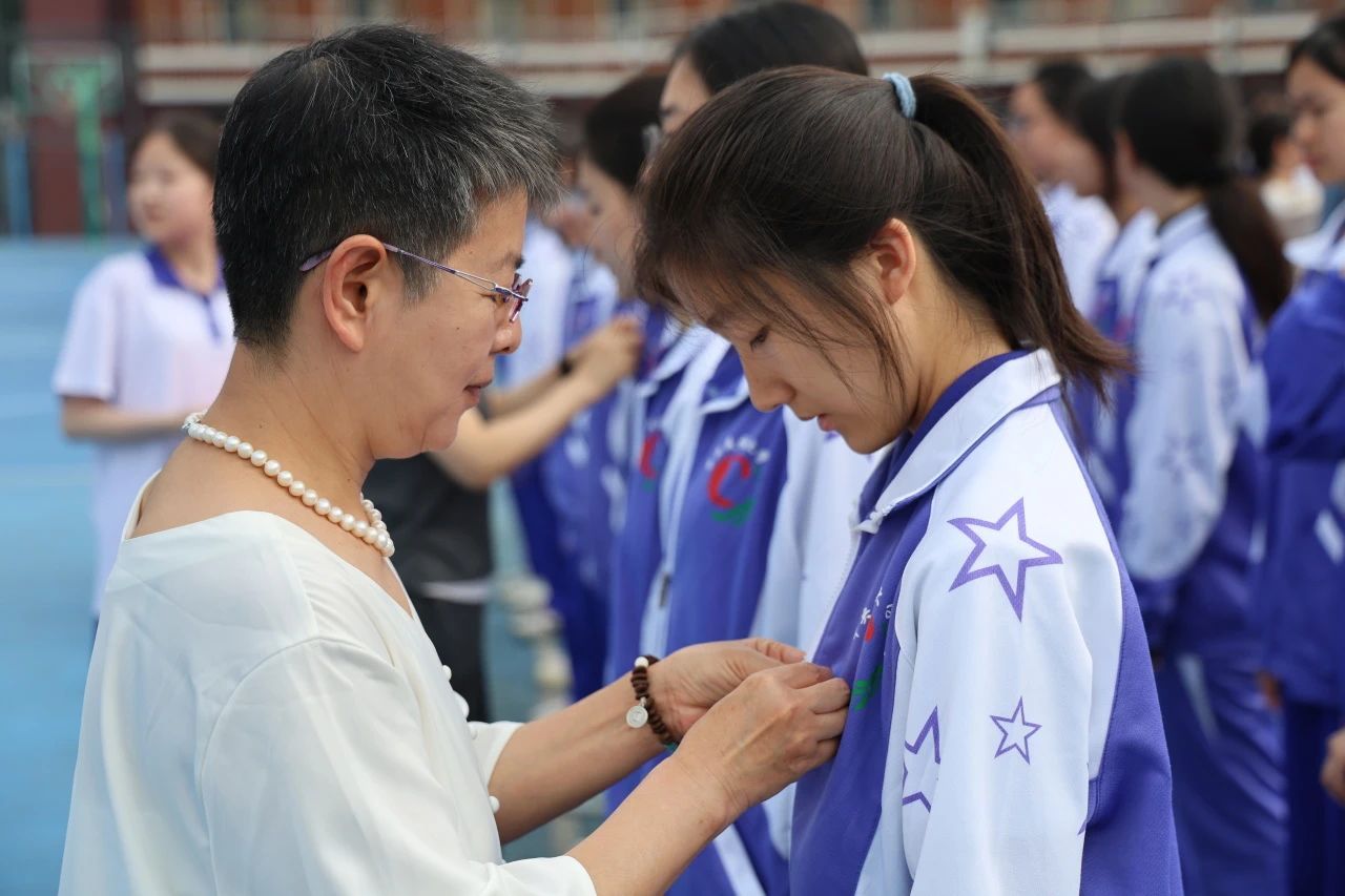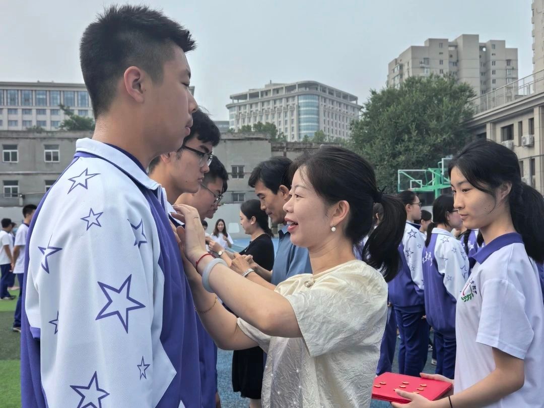 校领导、年级主任、班主任老师为新团员佩戴团徽。一枚枚闪耀的团徽,不仅象征着责任与荣誉,更时刻督促着团员们严格要求自己,用实际行动诠释新时代青年担当。