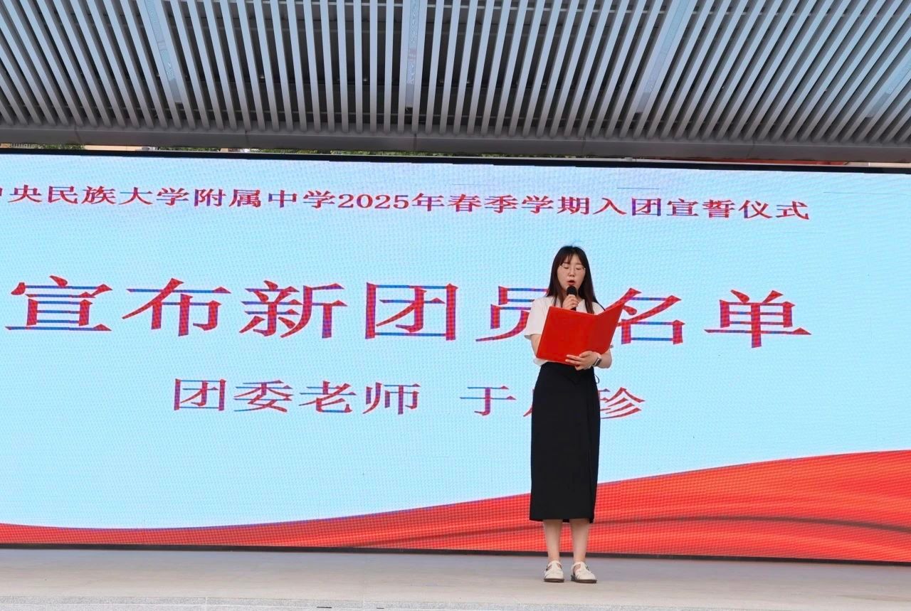 团委老师于启珍宣读新团员名单,并祝贺他们光荣地成为了中国共产主义青年团团员。