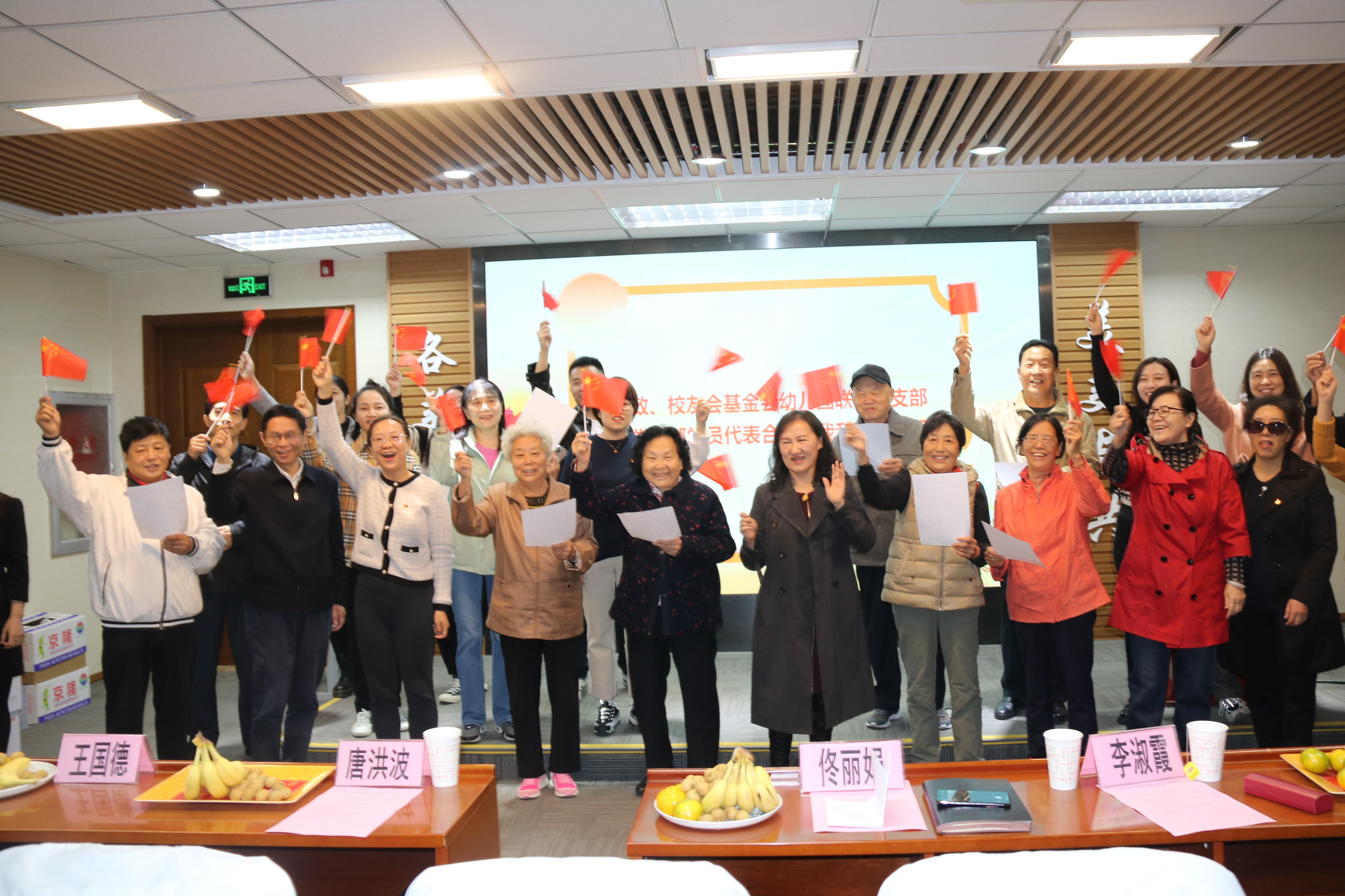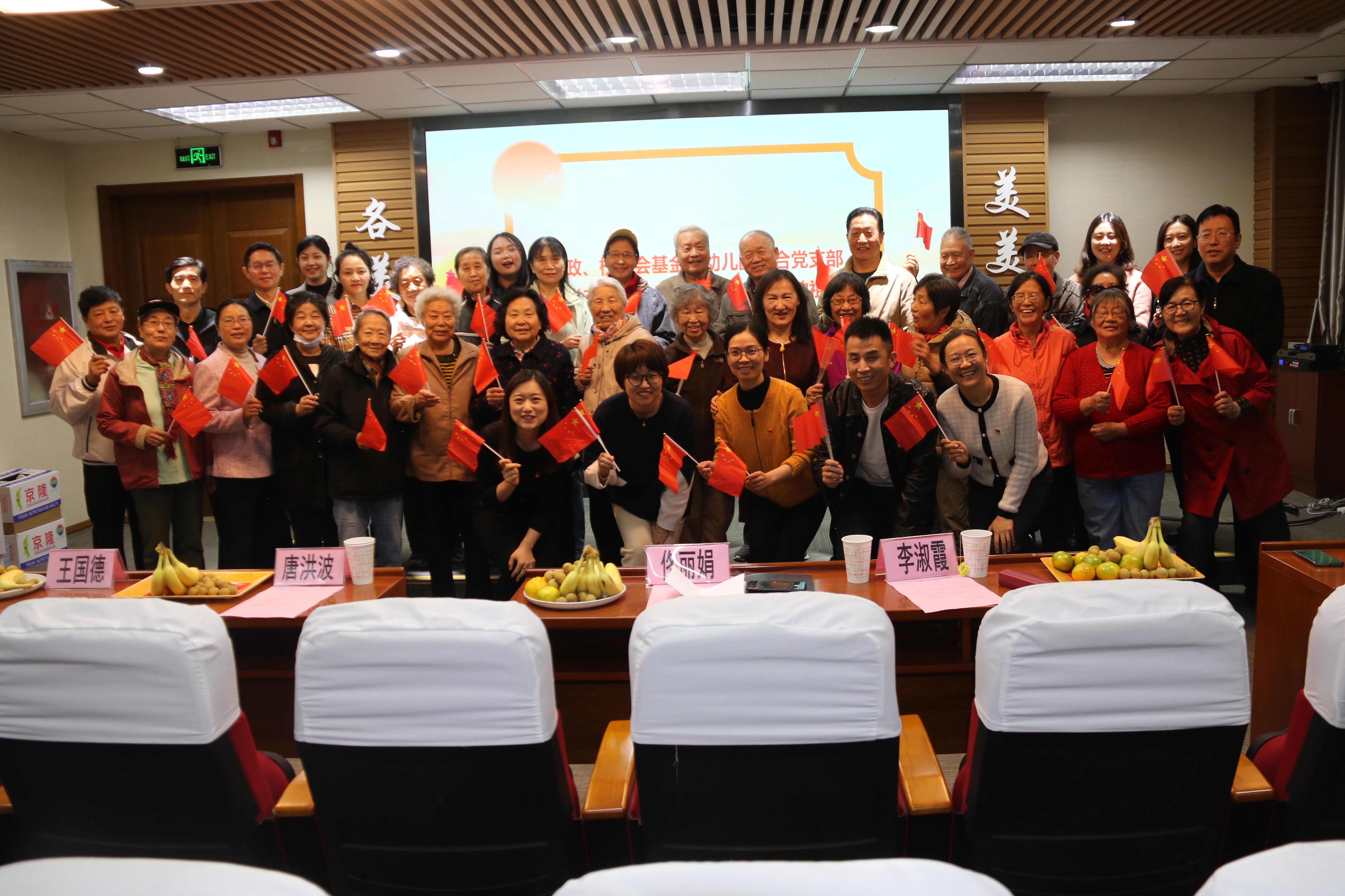 行政、校友会基金会幼儿园联合党支部党员与退休党支部党员代表共同演唱《我和我的祖国》,以真挚的情感表达对祖国母亲的讴歌赞美和深情祝福。
