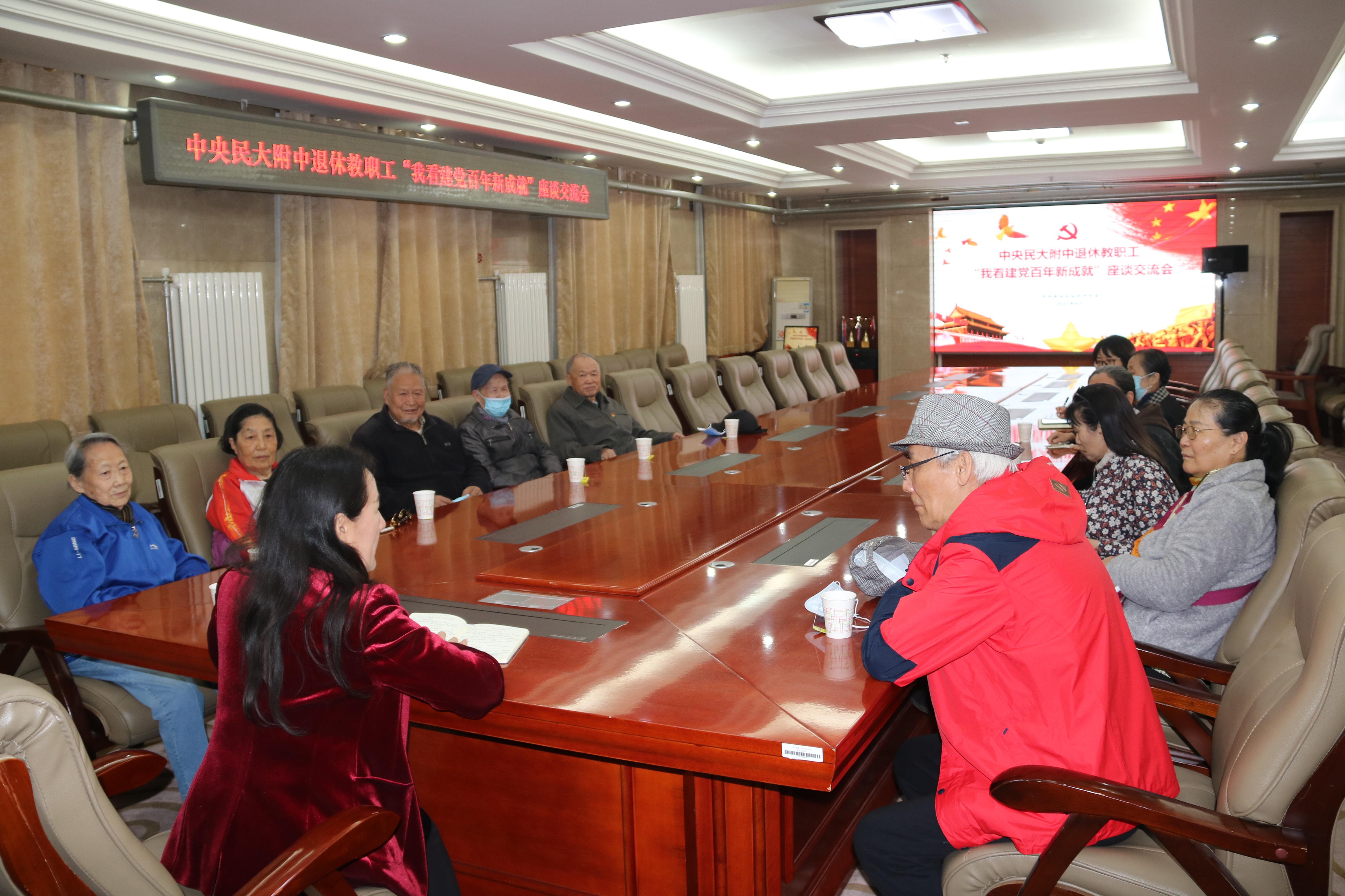 为认真落实国家民委离退休干部局关于开展“我看建党百年新成就”专题调研活动的通知精神,倾听退休教职工心声,礼赞建党100周年,民大附中党委于4月20日在海淀校区组织召开了退休教职工“我看建党百年新成就”座谈交流会。学校党委书记佟丽娟、党办校办副主任杜芳参会。
