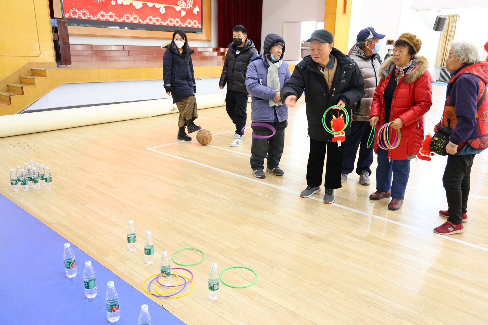运动会第二环节设置了运球、趣味保龄球、夹兵乓球、套圈等比赛项目,趣味十足,强身健体。退休教师们乐在其中,场面温馨和谐,趣味运动会在欢声笑语中圆满落幕。