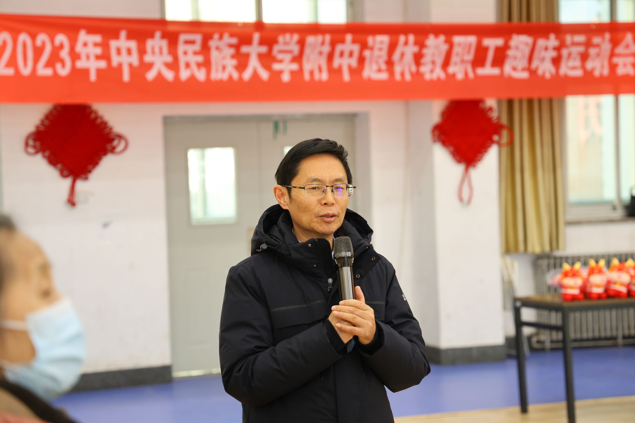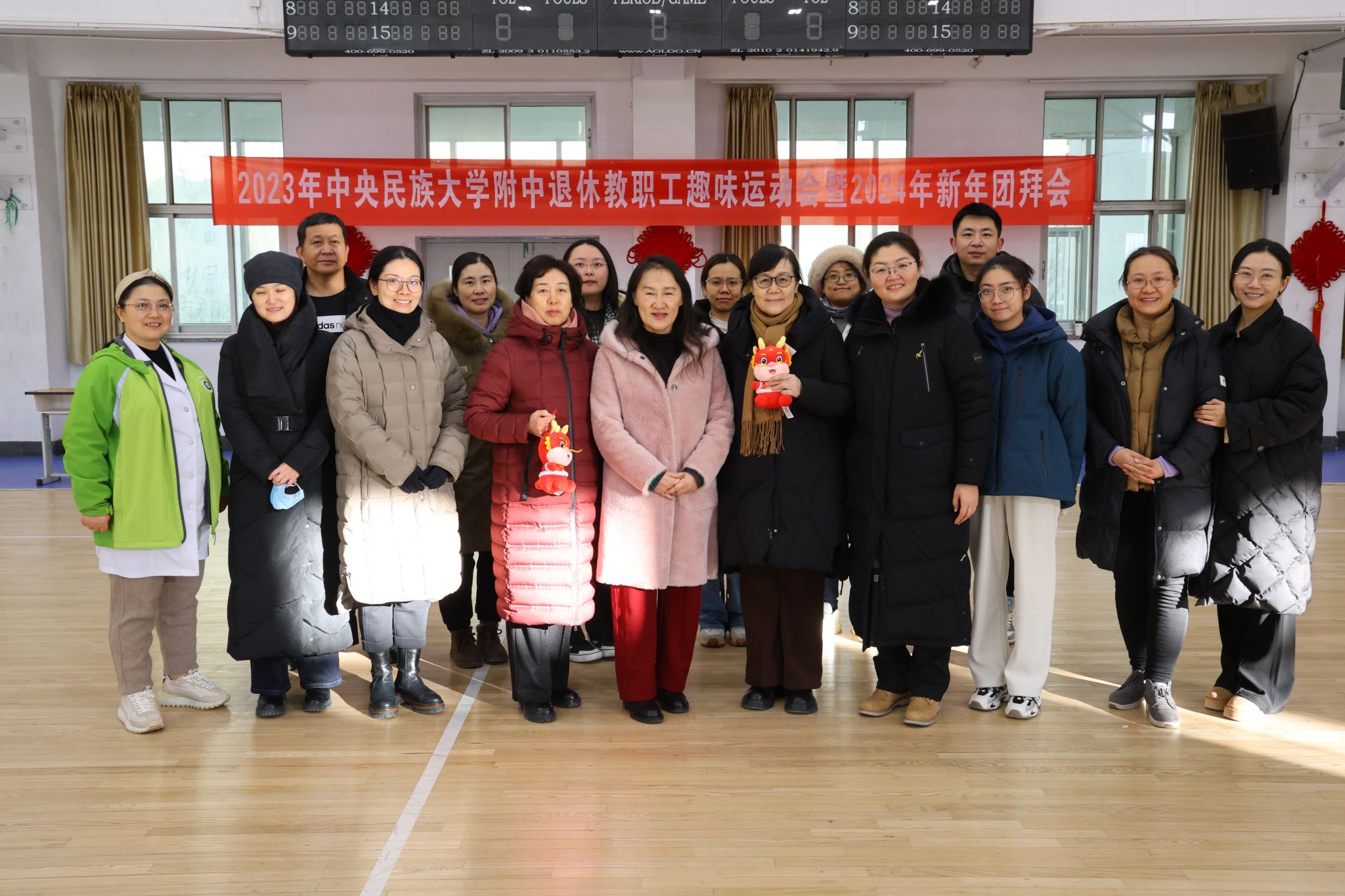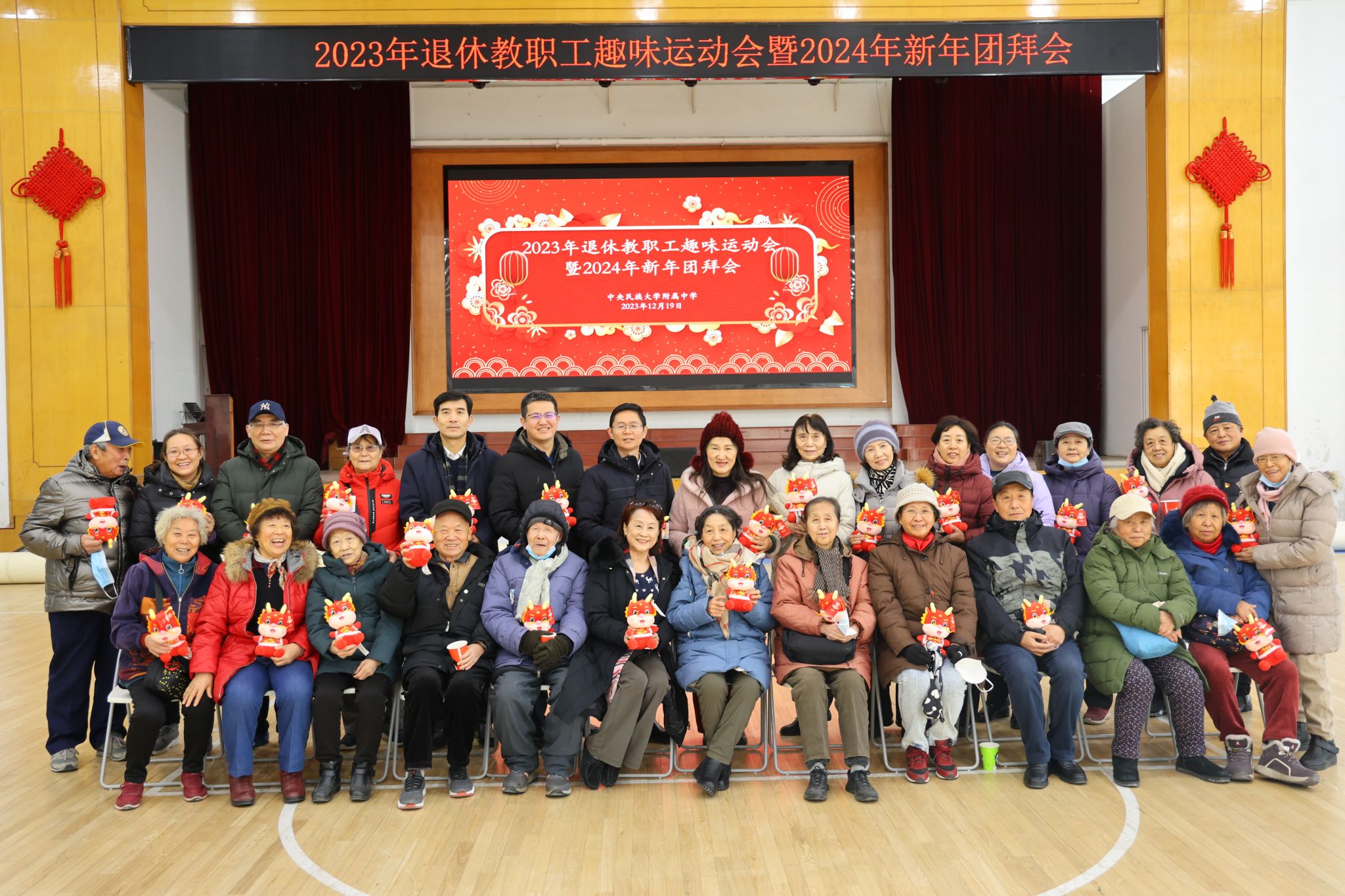 为丰富退休教职工的精神文化生活,增进退休教职工之间的友谊,更好地关心、关爱老干部,铸牢退休教职工中华民族共同体意识,构筑中华民族共有精神家园,2023年12月19日,我校在海淀校区风雨操场举办以“中华民族一家亲,同心共筑中国梦”为主题的退休职工趣味运动会暨2024年新年团拜会。学校党委副书记、校长唐洪波,党委常务副书记佟丽娟及其他在校校领导,部分中层干部,行政校友会、基金会幼儿园联合党支部党员,工作人员与退休教师们欢聚一堂,共叙情谊。活动由党委常务副书记佟丽娟主持。