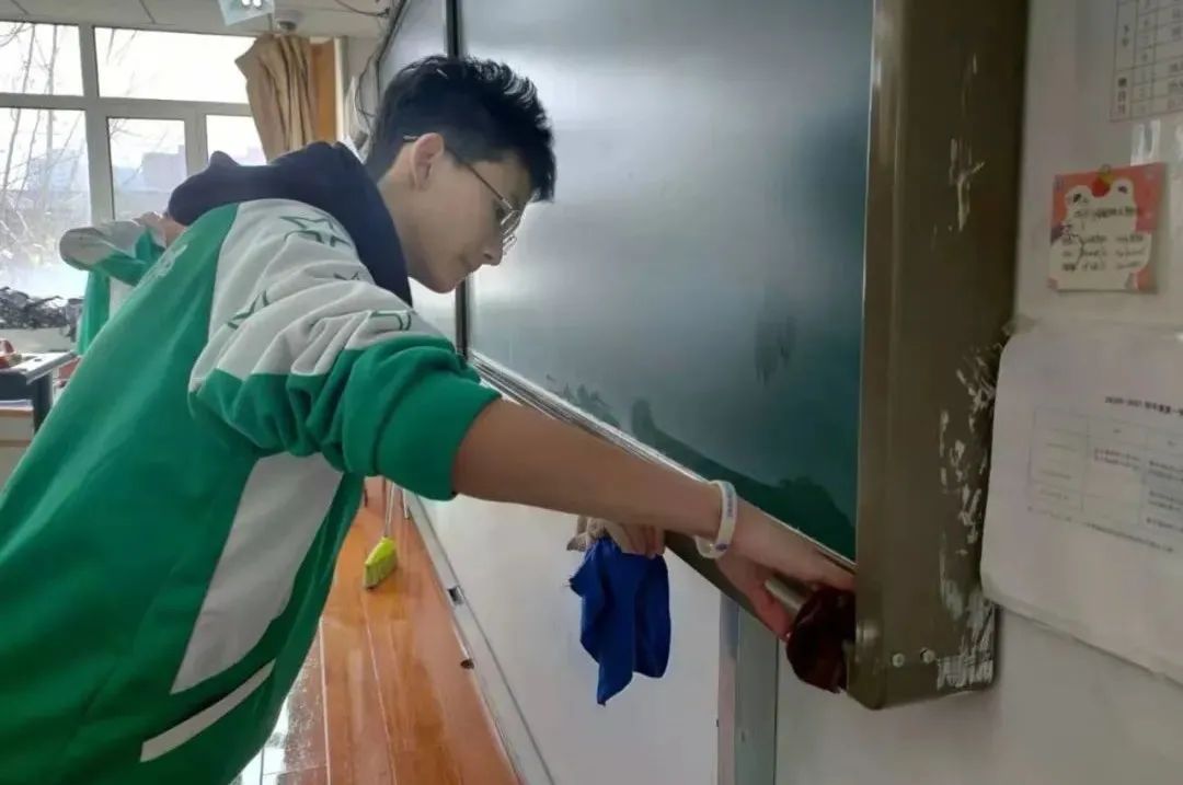 作为一所寄宿制高中,我校学生长时间在校学习和生活,培养良好劳动习惯和品质是必不可少的。学生每天动手整理内务、打扫宿舍,经常换洗床单被罩,每周固定时间对宿舍、教室和校园开展卫生清扫。德育科同年级组、生活组,从制定内务评比标准、扫除标准、划定责任区域、开展学生动员培训一直到扫除后进行反馈评价形成工作闭环。同学们自己的事情自己做,集体的事情一起做,不会的事情学着做,大到地面清扫、橱窗擦拭,小到书架整理、门槛清洁均由自己动手完成,劳动中同学们互帮互督,或一丝不苟或欢声笑语,共享着干净整洁的校园环境。