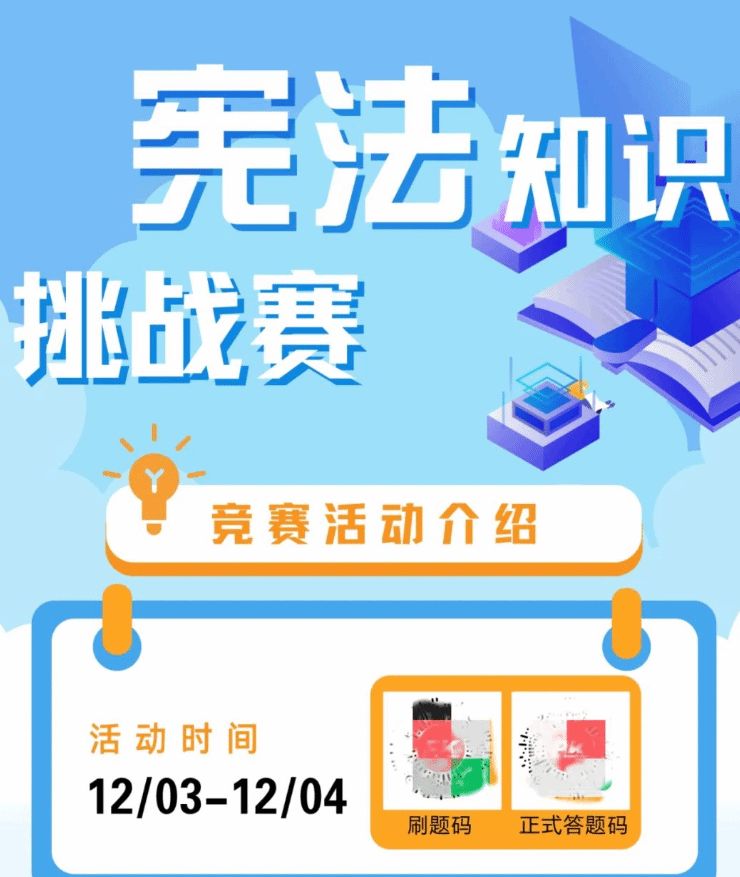 12月3日至12月4日,我校徳育科、团委、政治学科组联合举办了民大附中宪法知识竞答活动。同学们可以先通过刷题模式学习了解宪法等相关知识,然后再进入到正式竞答模式,一展身手!题目围绕习近平法治思想、宪法、民法典等方面的法律知识,设置单选题,多选题和判断题等形式。依据初中部、高中部不同年级的参与人数,按照10%、20%、30%的比例评出一等奖、二等奖、三等奖。
