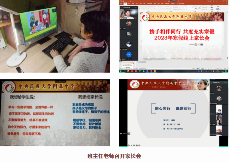 期末考试后,为了让家长更为深入地了解孩子在校学习情况,同时更加科学合理地安排好学生的假期生活,初一、初二、高一、高二年级分别在德育科的统一组织下召开线上家长会。线上家长会分两个阶段进行,首先由校领导总结回顾本学期学校教育教学各项工作开展情况,特别感谢家长朋友们一直以来对学校工作的支持和配合。第二阶段由年级主任以及班主任就日常管理和学生们的学习活动表现情况与家长进行沟通,要求同学们假期在家要固化健康习惯,强化个人是健康“第一责任人”的意识,“科学佩戴口罩、常通风、勤洗手、少聚集”成为习惯;要精心规划利用好假期。如适当休闲、锻炼、调理身心,读几本好书,学习家务技能,走进社会、开阔眼界,高质量完成学校布置的假期作业,针对性地进行查漏补缺、补弱补短,总结反思规划后期学习生活;要做好家庭安全守护,火情火灾、交通意外、电信诈骗、意识形态安全等。