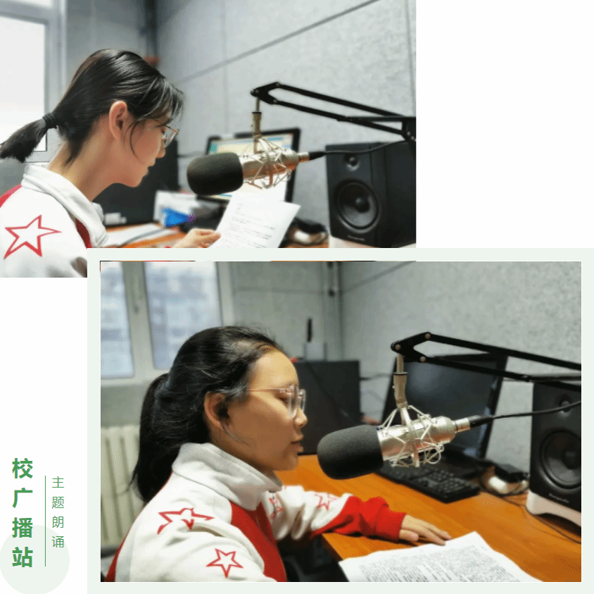 校广播站的播音员们在清明节来临之际,怀着无比崇敬的心情用慷慨激昂的声音诵读《在烈士纪念碑前》,以深切缅怀革命先烈,颂扬、传承革命先烈的崇高精神。