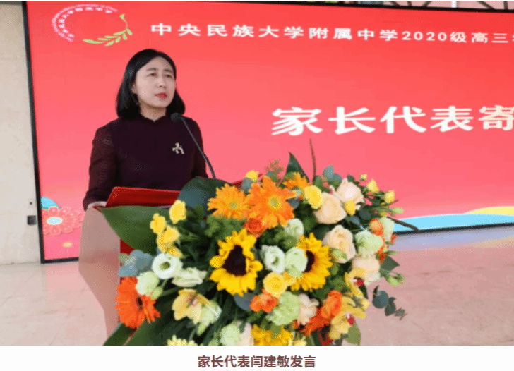 高三6班闫琪同学的家长闫建敏作为家长代表发言,她向学校精心育人表达了由衷感谢,向2020级全体同学步入成年人行列表示祝贺。同时,她希望同学们要树立远大理想、要做好人生规划、要坚持勤学善思笃行。