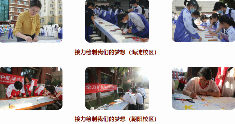 绘画可以帮助了解我们自己无法言表的心理世界,通过外化、宣泄和认知的过程,达到缓解压力的作用。师生用蜡笔依次在10米长卷上表达自己的梦想,最后再汇聚成一个整体,将“我的梦想”一起变成属于“我们的梦想”。