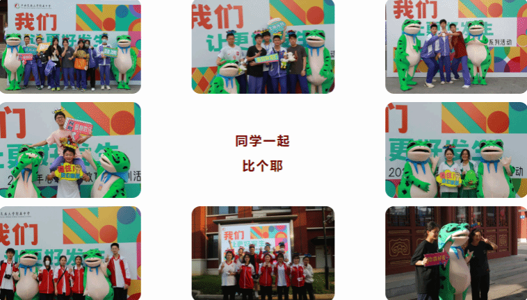 微笑不单是一种表情,更是一种情感。在活动现场,同学们邀请老师、朋友,与可爱的道具以及青蛙人偶一起合影,定格微笑的欢乐时光。