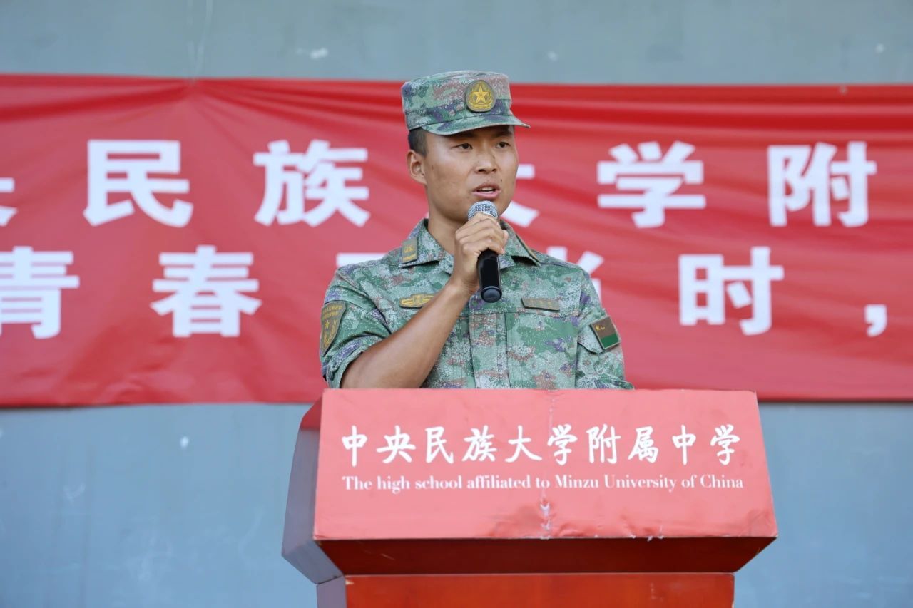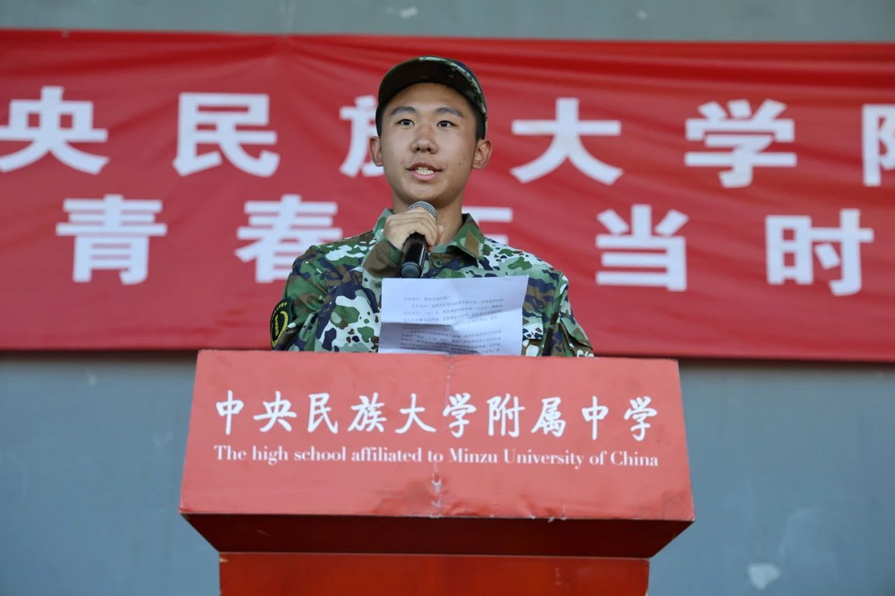 学生代表曹艺潇同学表达了自己对教官和民大附中老师的感谢,并立志把军训的结束作为一个新起点,带着刻苦军训的成果投入今后新的学习生活,做一个新时代的有为青年!