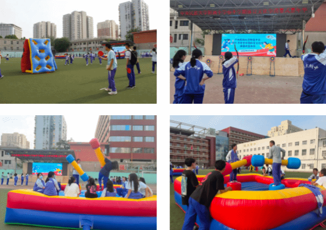在体育文化节闭幕式期间,为了进一步丰富同学们的业余生活,我校举办了体育嘉年华活动,舞林争霸、人体穿墙、百发百中、射箭、投壶、扎染等项目让同学们流连忘返。