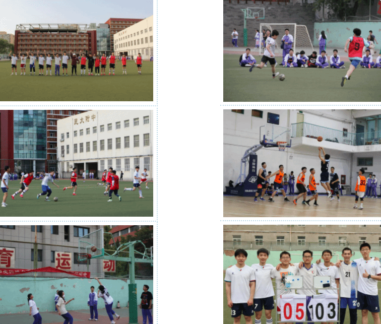 每年的篮球、足球班级联赛都是深受同学们欢迎的体育比赛,各班精英尽出,他们拼劲十足,毫不相让,漂亮的传球、闪避、抢球、投球、射门、奔跑、欢呼、呐喊,一腔热血在青春里点亮。场外的啦啦队也毫不示弱,呐喊助威声一浪高过一浪,把班级联赛推向一个又一个高潮。