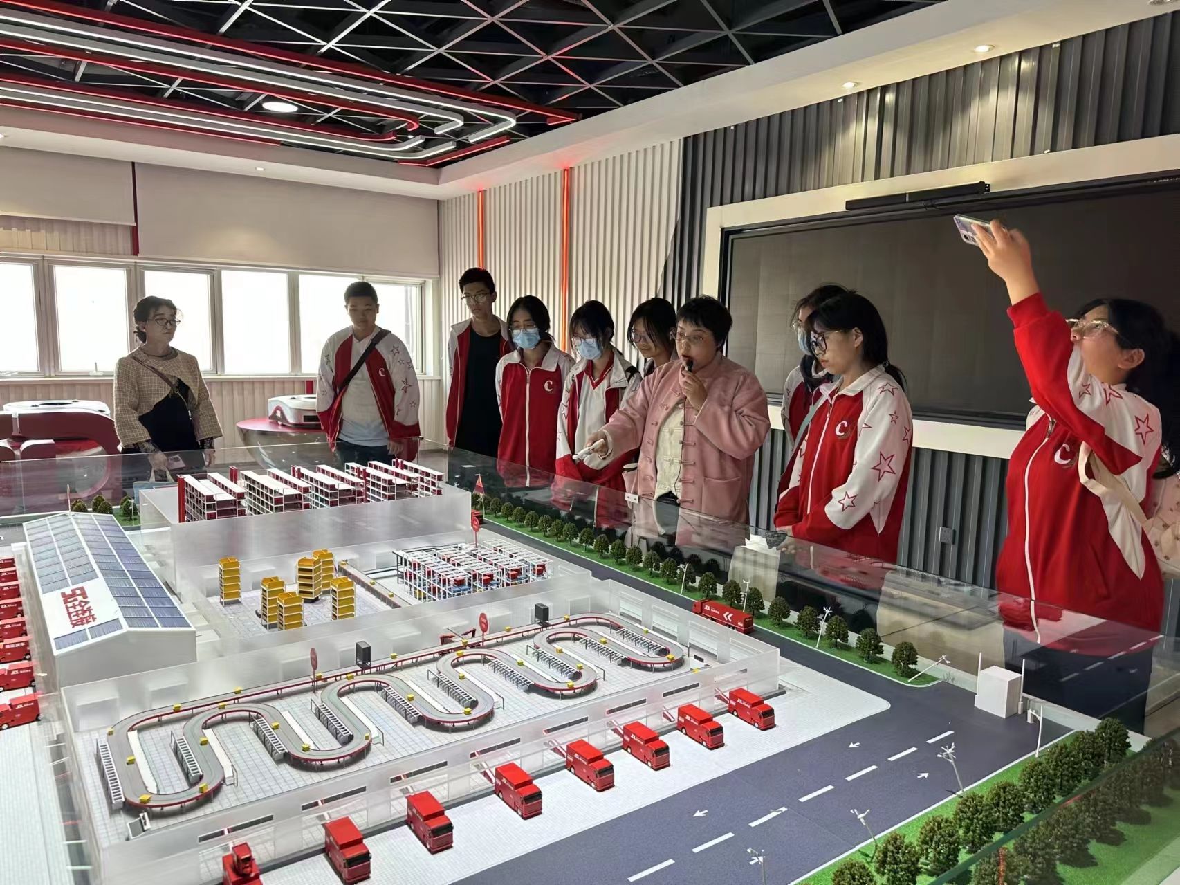 同学们走进京东物流公司的智能园区,并跟随工作人员的介绍,深入了解京东物流建设和发展的历史,体验先进物流技术和现代物流科技的发展,感受智能物流的高效和便捷。