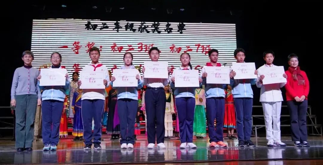 在合唱之后,展演活动迎来了最为璀璨的时刻——颁奖典礼。随着主持人洪亮的声音宣布获奖名单,获奖班级和优秀指挥代表们满怀喜悦地走上舞台,接受这份来之不易的荣誉。他们的脸上洋溢着自豪与喜悦,那是对过去辛勤付出的最好回报,也是对未来继续努力的坚定信念。
