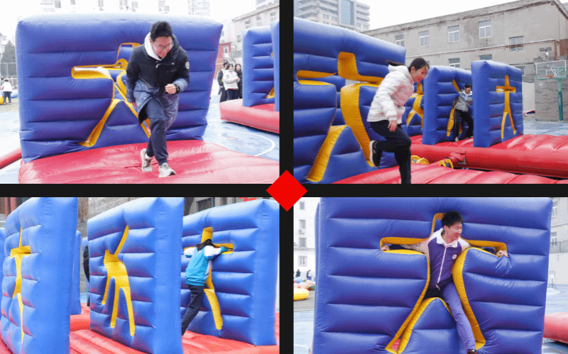 “人体穿墙”助跑冲刺纵身一跃,穿过充气墙的瞬间超燃,拼的就是身体协调,极速闯关。