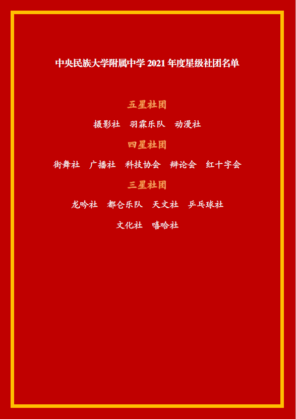 william威廉中文官网附属中学2021年度星级社团名单
