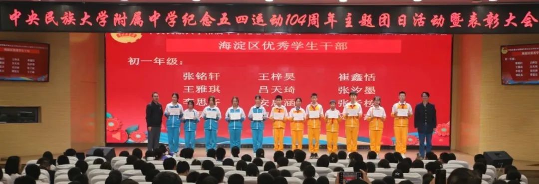 校党委常务副书记佟丽娟,党委副书记、纪委书记李品,副校长魏立功,校长助理宗俊英以及学校党委委员、党支部书记、部分中层干部、年级主任、团干部、大队辅导员等出席活动,优秀团员青年代表、少先队员代表、“青马工程”学员、“少年先锋团校”学员及受表彰集体、个人总计800余人参加活动。活动由初一5班刘奕含、初二4班张亦驰、高一13班张尧、高二1班安琦尔主持。