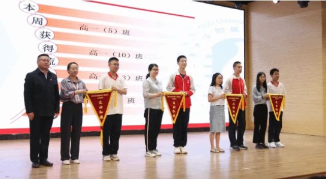 德育科副科长刘漾宣读了获奖名单,学校各位领导给学生们颁奖。
