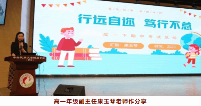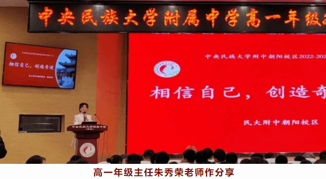 高一年级主任朱秀荣老师给学生们分享了“借力的故事”。她鼓励同学们要利用好学校和教师这个资源,珍惜我们的每一次作业及每一次测试,珍惜在民大附中的同学同伴互学互助的优势,利用好自己的优势。她寄语同学们,高中阶段是人生最重要最关键的时期,只有在日常的生活和学习中静下心来,自律自强,勤学善思,踏实诚信,不断沉淀积累才能实现心中的梦想,希望每个同学都能把追求优秀当成一种习惯。