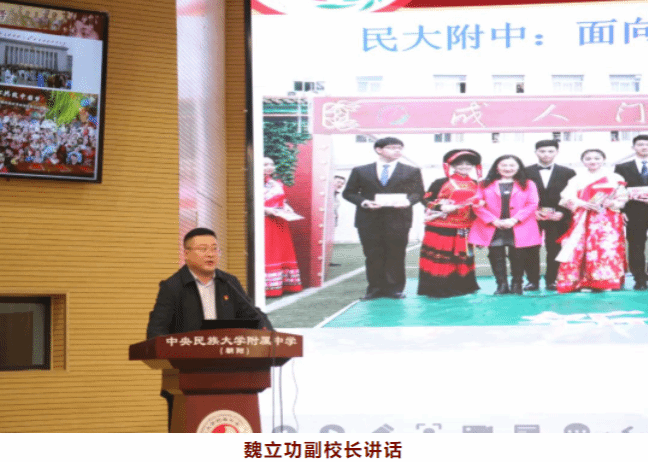 魏立功副校长对本次获奖的同学表示祝贺。他在讲话中提到,2023年是民大附中建校110周年,十年前,在学校建校100周年之际,习近平总书记给民大附中全体学生回信,鼓舞勉励民附学子,希望同学们们努力成为建设伟大祖国、建设美丽家乡的有用之才、栋梁之才,为促进民族团结进步、实现共同繁荣发展作出应有贡献。魏校长向同学们介绍了我校的优秀校友代表,并传达了近日习近平总书记在雄安考察时对民大附中雄安校区高二年级学生的勉励,鼓舞同学们勤奋努力学习,成长为最好的自己。